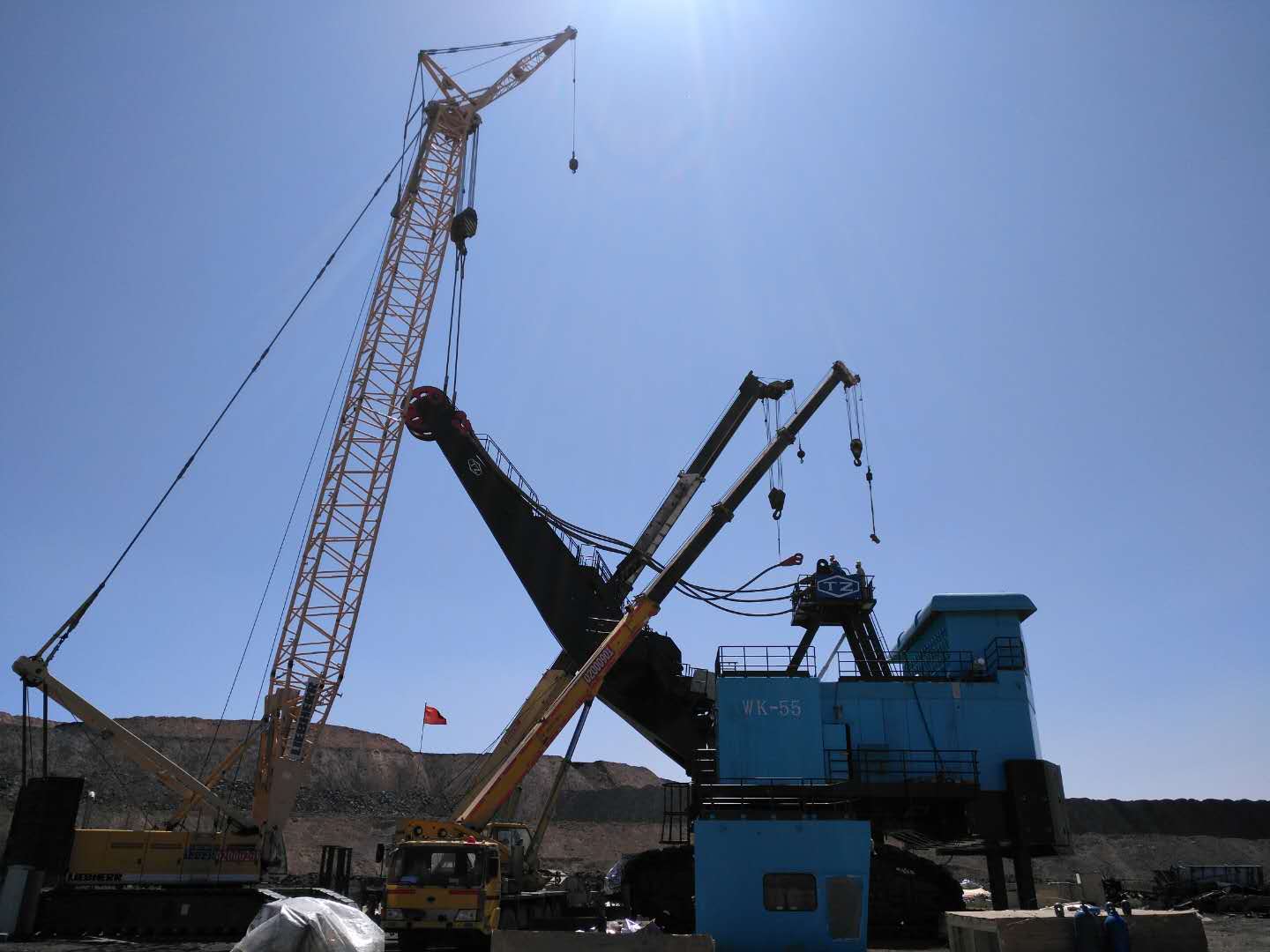 近日,從礦山設備分公司準格爾 WK-55電鏟現(xiàn)場安裝項目組傳來好消息:在疫情防控的特殊時期,項目組全體成員肩負使命、攻堅克難,歷時 61 天,提前一周完成現(xiàn)場安裝調(diào)試任務!意味著又一臺“TZ”牌世界第二大礦用挖掘機巍然屹立在了準格爾黑岱溝露天礦!
